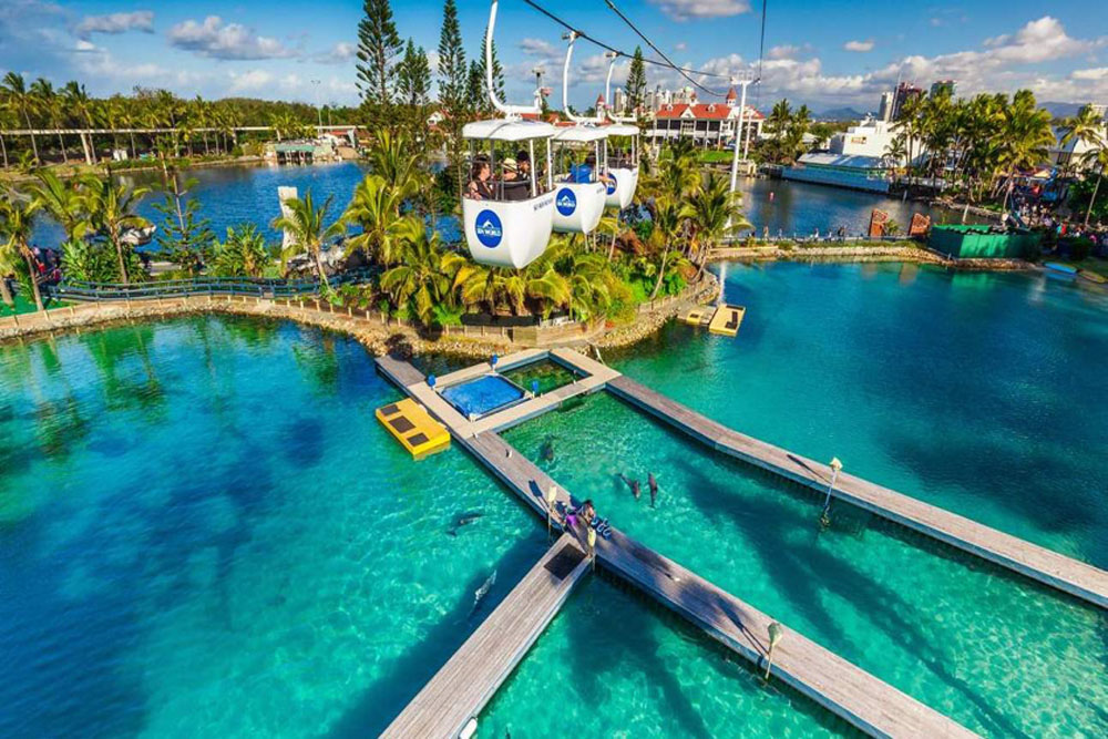 海洋世界是黄金海岸三大主题乐园之一,有很多游乐设施,还能看见好多的海洋生物,待一整天都不会腻, 非常适合带小孩去。公园非常大,就建在海边,里面的水都是引进来的海水。企鹅、鲨鱼、北极熊、魟、海豚、海星、海参……还有金海豹冒险剧场里观赏令人捧腹的海狮、海狗表演,在鲨鱼湾中进行潜水练习并与各种美妙的珊瑚、鱼类亲密接触。园内还有各种老少皆宜的娱乐设施,可乘坐空中缆车前往各分区。除了表演秀,公园里也安排了不少亲子互动项目,比如可以喂海豚与他们一起游泳,直升飞机空中环游黄金海岸。